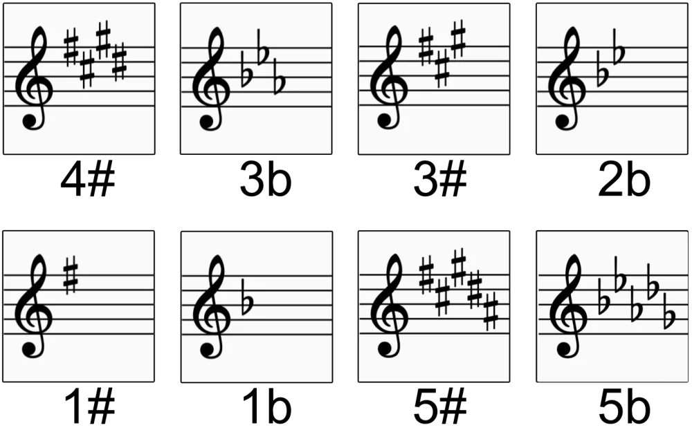 Jede Tonart hat ihre eigene Mischung aus Vorzeichen, die ihren Klang prägt. Hör dir die A-Dur-Tonleiter an – wie viele Vorzeichen siehst (und hörst) du?